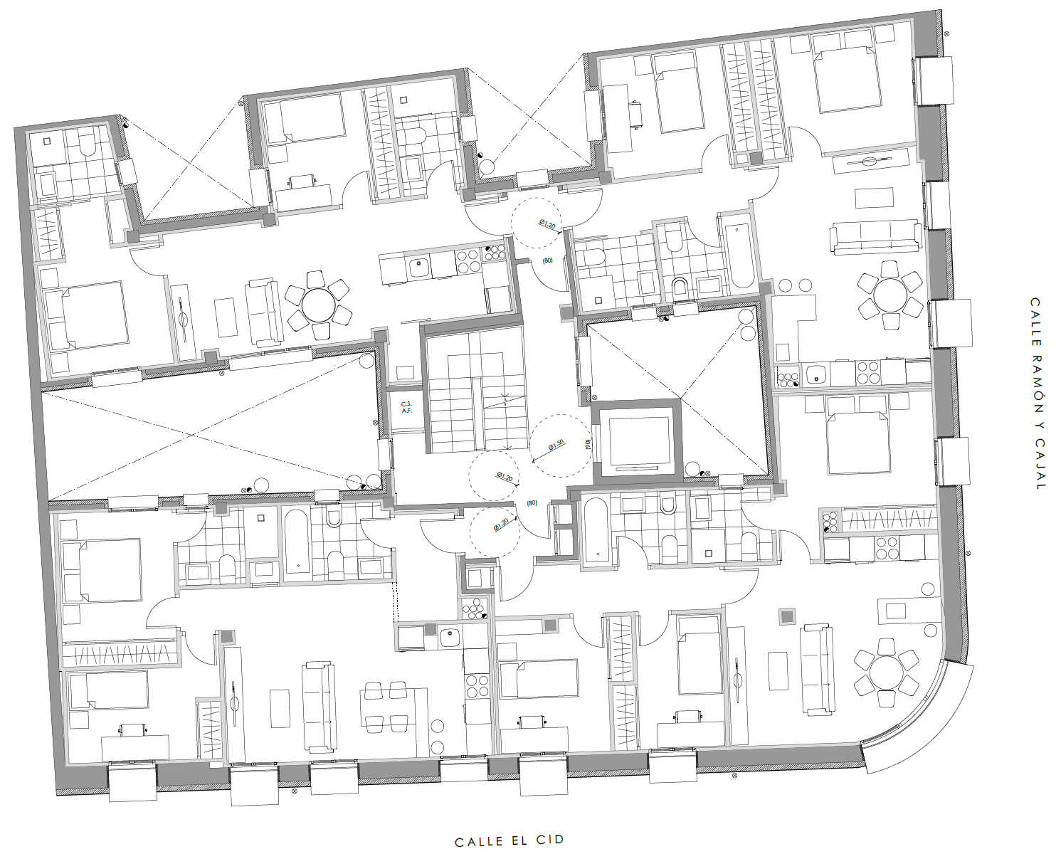 Rehabilitación integral de edificio residencial compuesto por 20 viviendas en bloque (baja+5), con tipologías de 2 y 3 dormitorios y locales comerciales en planta baja. Actuación completa sobre la envolvente, mediante renovación de fachada con sistema SATE y la integración de marcos metálicos perimetrales en los huecos de ventana.. Certificación energética «A».