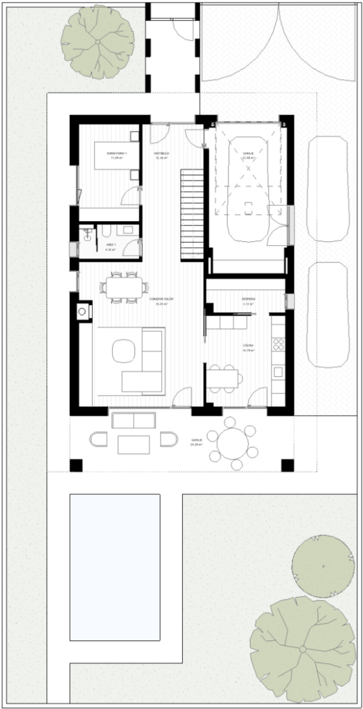 Vivienda unifamiliar aislada de 212m² útiles en parcela de 500m² distribuida en 2 plantas (b+1). Consta de 5 dormitorios, 3 baños, cocina y salón/comedor con chimenea. Garaje en el interior de vivienda. Piscina en zona ajardinada privada. Certificación energética «A».